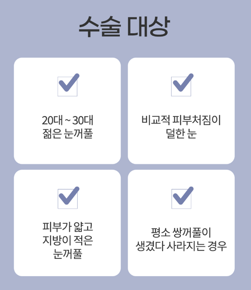 1. 눈꺼풀 상태(피부, 두께, 지방 양 등)에 따라 적합 여부가 달라짐