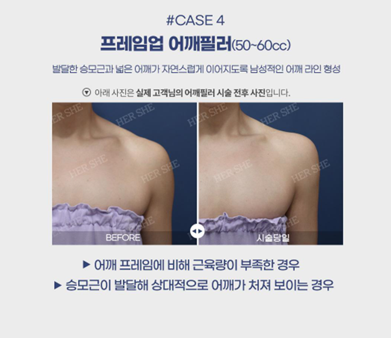 셔츠 핏이 달라진다? 남자 어깨필러로 체형 인상 개선? 셔츠를 입었을 때 어깨선이 자꾸 안으로 말려 보이거나 상체가 왜소해 보이거나 체중 변화는 없는데 핏이 늘 아쉬운 경우 이런 고민을 가진 분들이 최근 남자 어깨필러에 관심을 가지는 경우가 많습니다. 단순히 볼륨을 키우는 개념보다는, 체형 비율과 어깨라인을 정리해 인상을 보완하는 목적에 가깝다고 볼 수 있어요. 어깨 라인이 셔츠 핏에 미치는 영향? 셔츠 핏은 가슴이나 허리보다 어깨선의 각도와 폭에 따라 크게 달라집니다. 1. 어깨가 좁거나 아래로 떨어지는 경우 : 셔츠가 흘러내려 보임 2. 승모근만 발달한 경우 : 둔하고 답답한 인상 3. 좌우 비대칭이 있는 경우 : 옷이 한쪽으로 쏠림 이럴 때 어깨 라인이 정리되면 상체가 안정적으로 보이고 전체적인 체형이 더 균형 있어 보이는 효과를 기대할 수 있습니다. 남자 어깨필러는 어떤 방식일까? 남자 어깨필러는 어깨 윗라인과 외측 라인을 중심으로 필요한 부위에만 볼륨을 보완해 직각에 가까운 어깨 실루엣을 만들어 줍니다. 과도한 볼륨보다는 자연스럽게 옷맵시가 살아나는 선을 목표로 진행하시는 것이 중요합니다. 특히 남성의 경우 여성처럼 둥근 라인 보다는 각이 살아 있는 안정적인 라인이 핵심 포인트가 됩니다. 남자 어깨필러 어떤 경우게 도움이 될까? 1. 운동을 해도 어깨 폭이 잘 넓어 보이지 않는 경우 2. 마른 체형으로 상체가 빈약해 보이는 경우 3. 셔츠나 재킷 핏이 향상 어색하게 뜨는 경우 4. 어깨 좌우 높이나 볼륨 파이가 신경 쓰이는 경우 단, 근육량 골격 구조 피부 상태에 따라 적합 여부는 달라질 수 있어 개인별 진단이 선행되어야 합니다. 자연스러운 인상 개선을 위해 중요한 점은? 남자 어깨필러에서 가장 중요한 것은 자연스러움입니다. 1. 과한 용량 : 인위적인 어깨 시루엣 2. 잘못된 위치 : 둔해 보이는 상체 라인 3. 체형 고려 없는 디자인 : 옷 핏 개선 효과 감소 따라서 체형, 어깨 각도, 상체 비율을 종합적으로 고려해 라인 중심으로 계획하는 접근이 필요합니다. 일상생활에는 지장이 있을까? 일반적으로 시술 후 바로 일상생활은 가능하지만 시술 부위 압박, 강한 상체 운동, 어깨를 무리하게 쓰는 활동 등은 일정 기간 주의가 필요할 수 있습니다. 회복 과정 역시 개인 차이가 있으므로 사전 안내를 충분히 듣는 것이 좋습니다. 남자 어깨필러는 "어깨를 크게 만든다"기보다 셔츠 핏과 상체 비율을 정리해 인상을 보완하는 선택지로 이해하는 것이 더 적절합니다. 체형 고민이 있지만 수술적인 방법이 부담스러운 경우, 본인의 어깨 라인이 어떤 상태인지부터 점검해보는 것이 출발점이 될 수 있습니다. *시술의 결과는 개인차에 따라 다를 수 있습니다. 모든 시술은 예기치 못한 부작용이 발생할 수 있으니 주의가 필요합니다. |